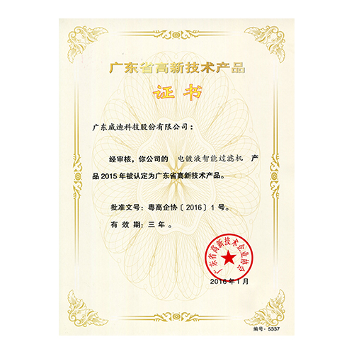 2015年廣東省高新技術產品-電鍍液智能過濾機