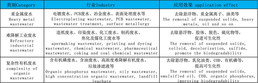 因連續(xù)高頻脈沖電離膜處理系統(tǒng)技術(shù)所具備的獨(dú)特優(yōu)勢(shì),決定了其廣泛的應(yīng)用范圍,尤其是傳統(tǒng)的物化、生化技術(shù)無法處理的廢水。
