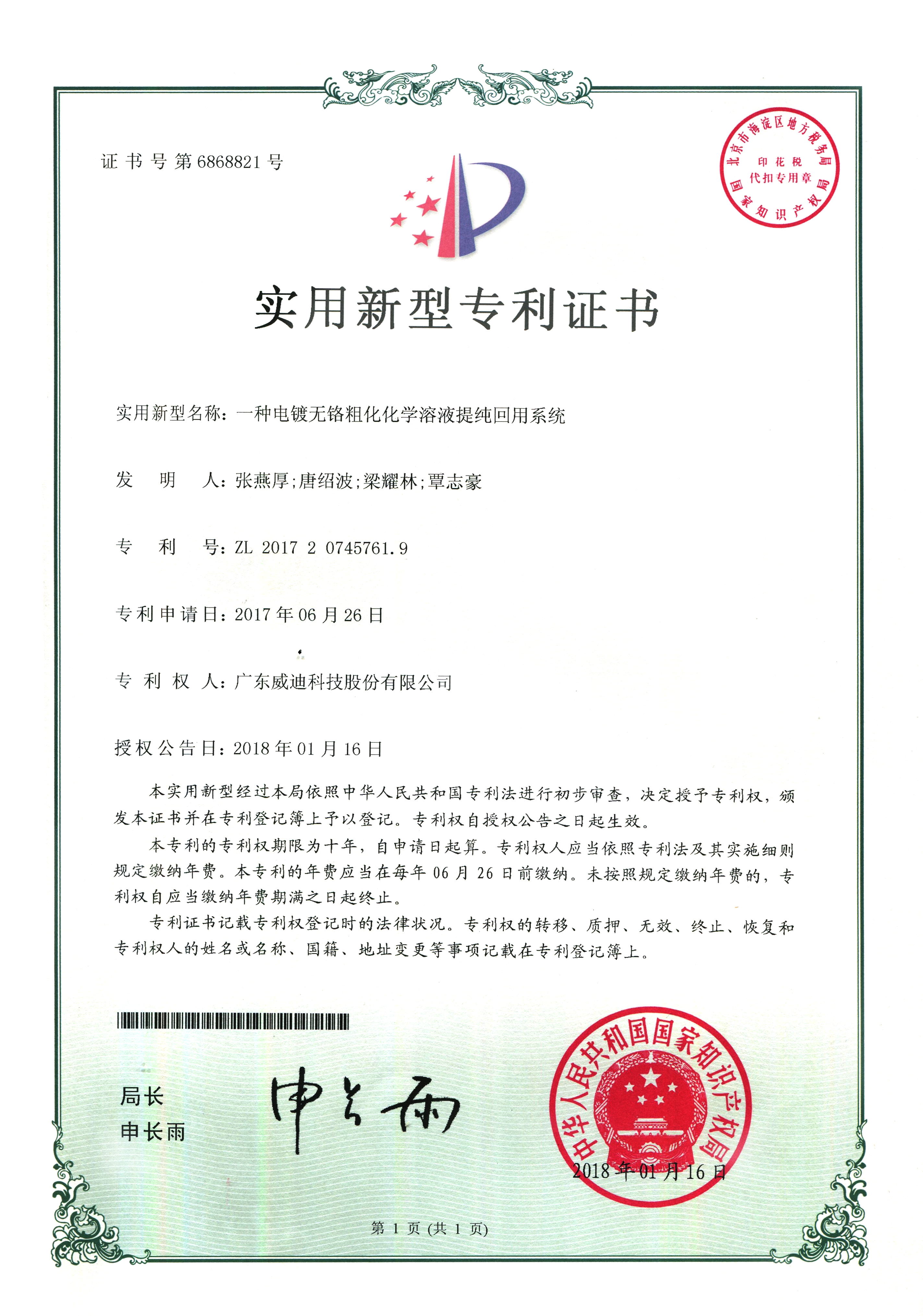 一種電鍍無鉻粗化化學溶液提純回用系統