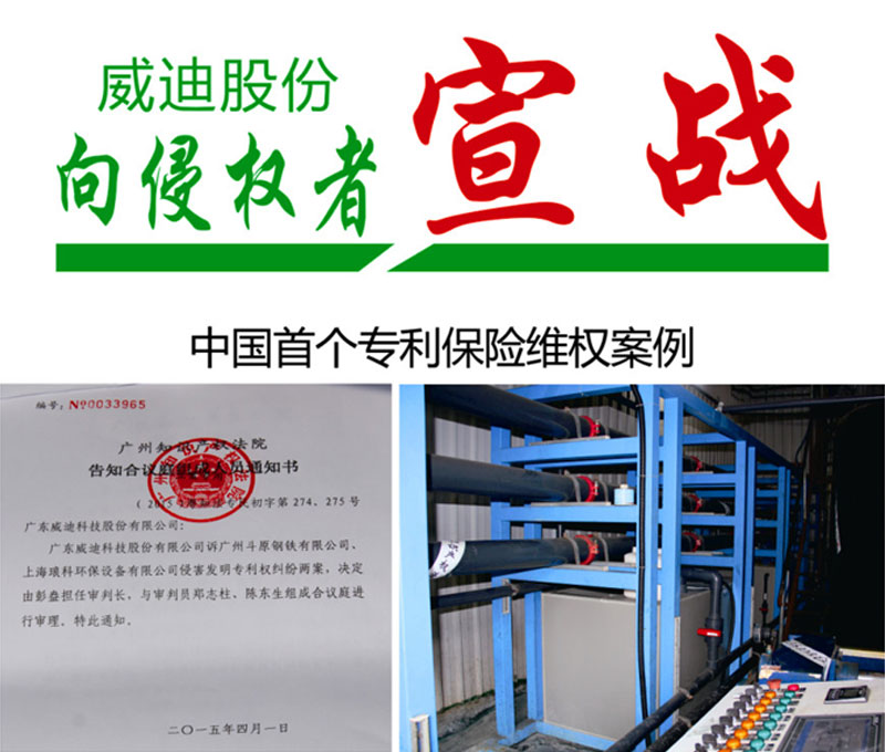 廣東威迪科技股份有限公司(以下簡稱“威迪公司”)憑借獨有的20多項發明專利和數十項的實用新型專利,近年來在污水治理市場迅速躋身領軍團隊。產品每年都花費巨額費用對產品進行完善改進,而產品推廣范圍逐年也擴大。