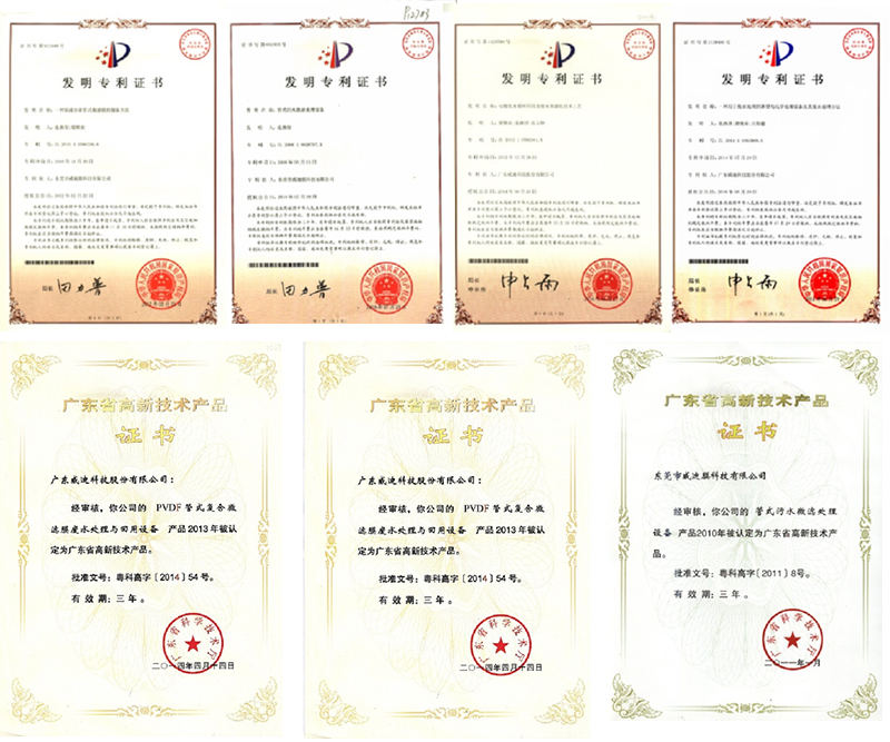 課題組自2006年開始進行基于管式微濾膜的污水處理技術研究與應用工作,分別完成了2006年東莞市創新基金項目《管式膜法廢水深度處理技術與成套設備》、2011年的東莞市科技型中小企業技術創新資金項目(201120110116)和2012年國家科技型中小企業技術創新基金無償資助項目(12C26214405316)《基于PVDF管式復合微濾膜的廢水處理與回用技術及設備》以及2013年度東莞市產學研合作項目《電鍍廢水膜法回用的電化學預處理關鍵技術研究》(201350910800625),2009年的國家自然科學基金項目《往復旋轉中空纖維膜剪切強化機理與滲透特性研究》(20906014)等項目。這期間獲得了19項發明專利、25項實用新型專利,發表相關論文24篇,獲得6項廣東省高新技術產品,1項東莞市科技進步二等獎,1項東莞市專利獎。目前該項目產品已經成功應用于36個較大型的廢水處理工程中。