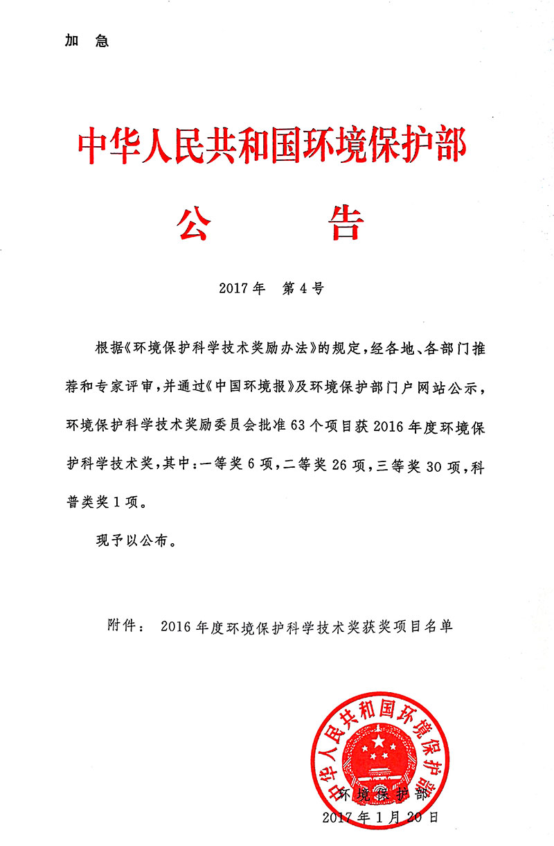 熱烈祝賀廣東威迪科技股份有限公司(股票代碼:870419)榮獲2016年環(huán)境保護(hù)科學(xué)技術(shù)獎(jiǎng)