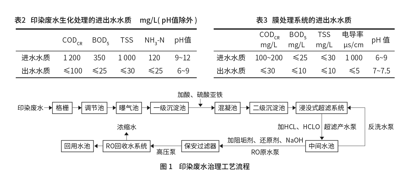 廢水采用反滲透膜設(shè)備處理后,含鹽量、電導(dǎo)率大大降低,達(dá)到或超過印染工業(yè)用水標(biāo)準(zhǔn),可滿足中高檔產(chǎn)品的生產(chǎn)需要。實(shí)際生產(chǎn)時(shí),可將反滲透處理后的回用水與一般生產(chǎn)用水以一定比例混合使用,以改善正常生產(chǎn)用水的水質(zhì),并降低用水成本。