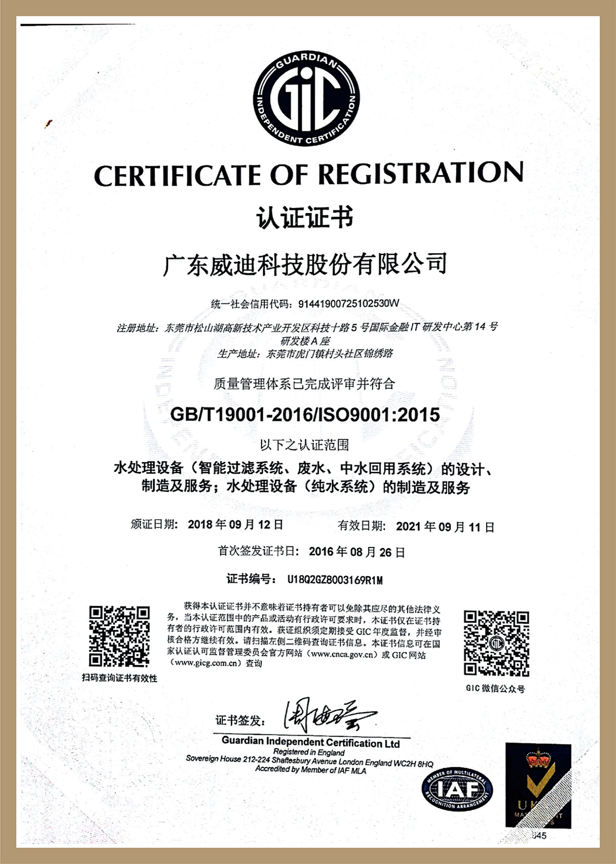 ISO9001 2015證書