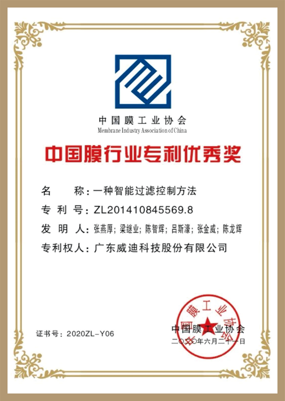 中國膜行業專利優秀獎