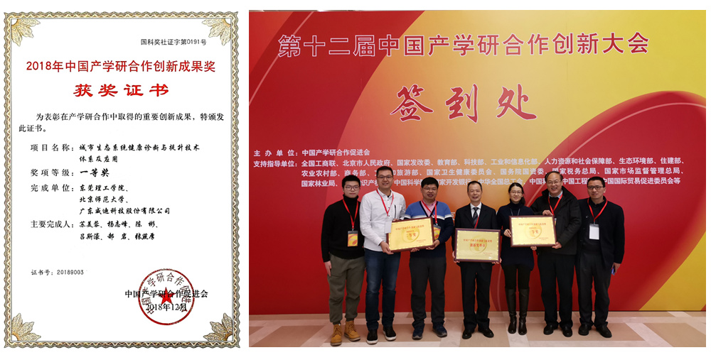 由廣東威迪科技股份有限公司聯合東莞理工學院、北京師范大學共同申報的《城市生態系統健康診斷與提升技術體系及應用》項目榮獲2018年中國產學研合作創新成果一等獎。